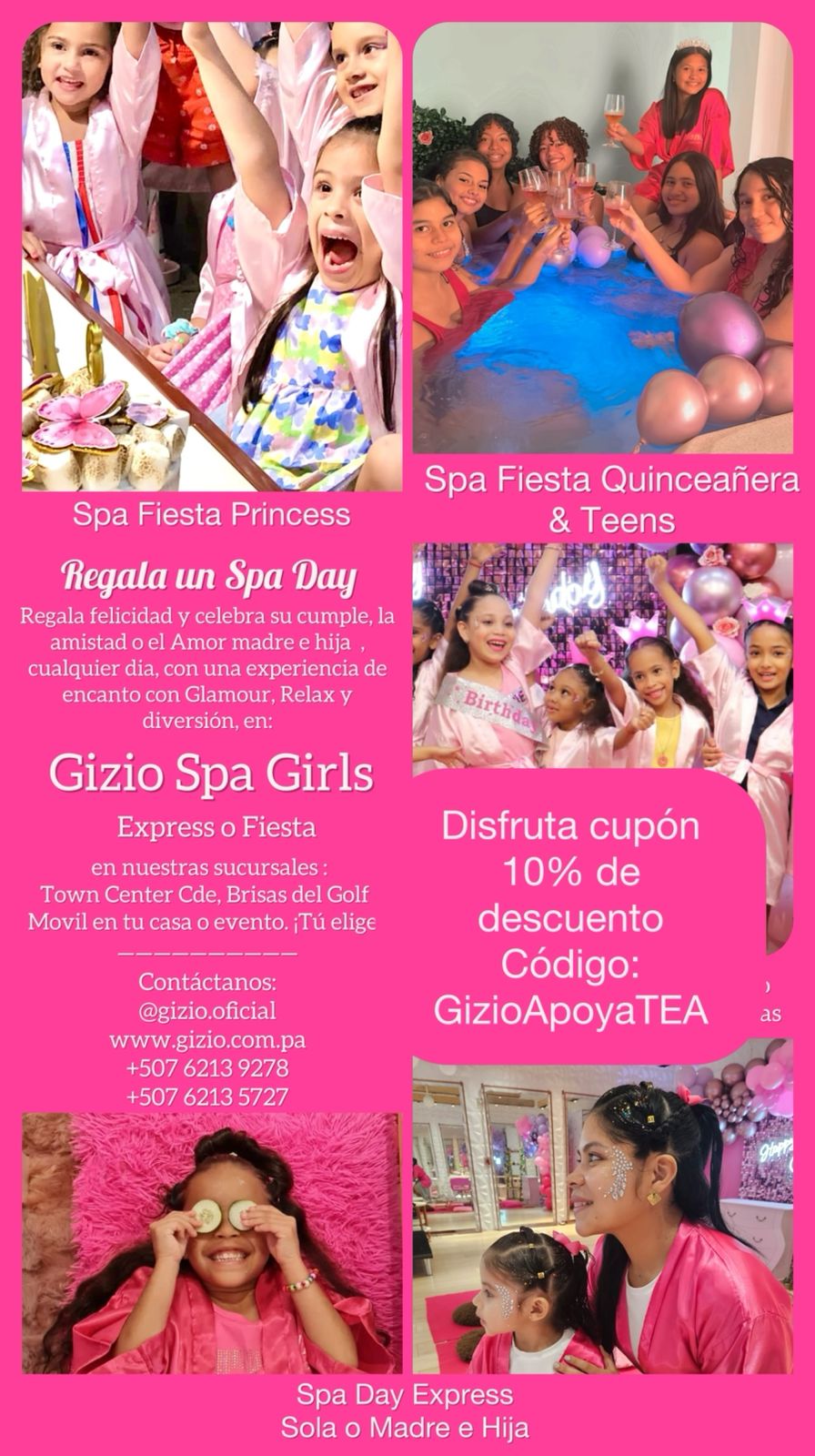 ✨ Cupón de descuento a disfrutar en Gizio Spa Girls, Express o Fiesta, en nuestras sucursales: Town Center Cde, Brisas del golf, Móvil en tu casa o tú eliges.